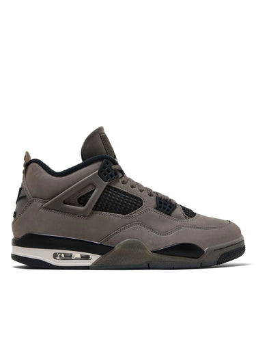 Los Air Jordan 4 Retro "Cave Stone" presentan un look sofisticado en tonos tierra que combina un upper de nobuk gris‑marrón suave con detalles negros en malla, ojales y etiqueta de talón con el clásico branding Nike Air. La media suela balancea tonos Cave Stone, negro y blanco, mientras que la suela translúcida con ligera salpicadura aporta un acabado cuidado y moderno.
