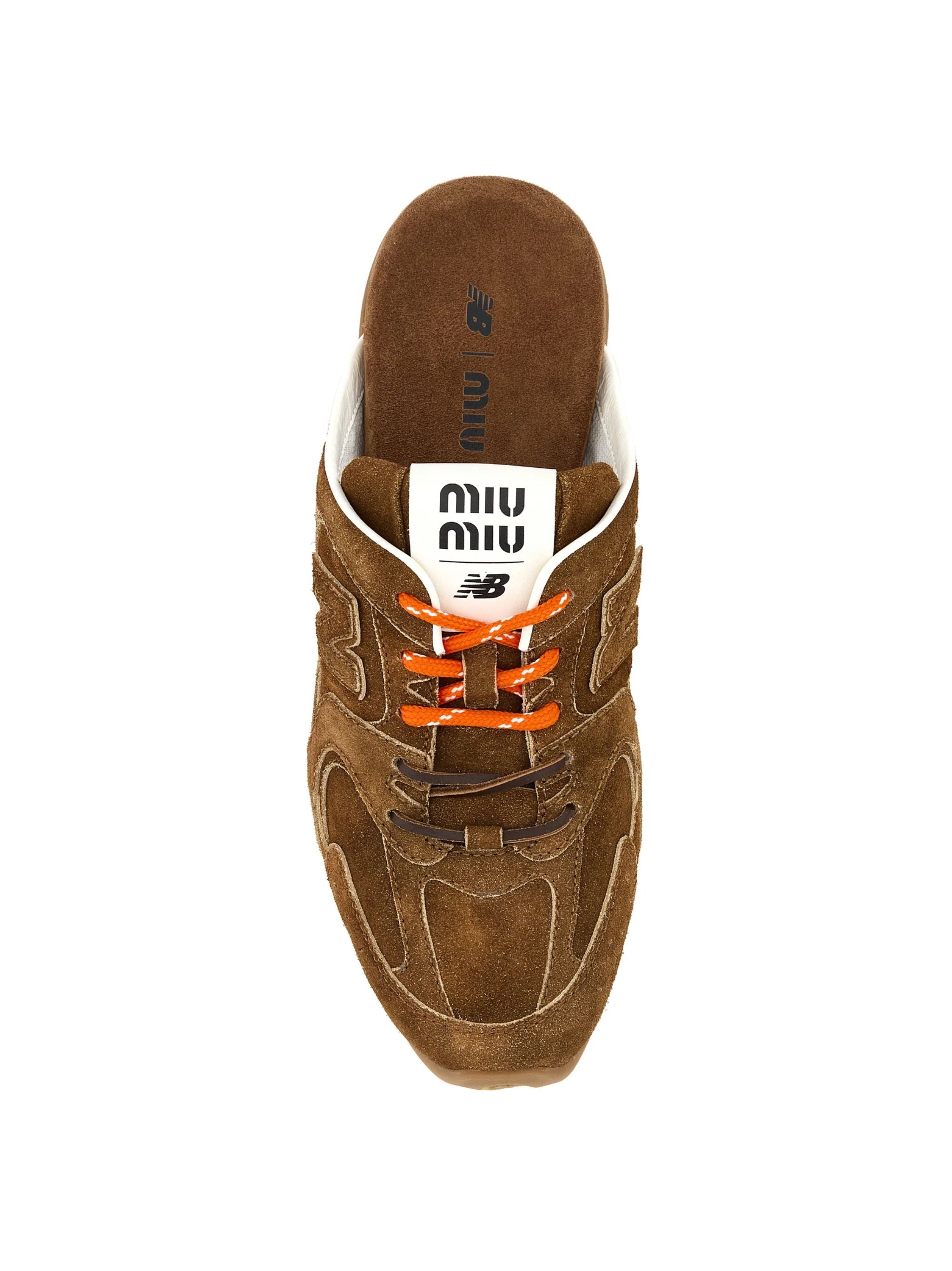 • Detalles de marca colaborativa New Balance x Miu Miu