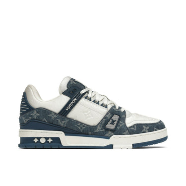 Diseñada por el director artístico de Louis Vuitton, Virgil Abloh, el icónico par LV Trainer se revisa esta temporada en denim Monogram y piel de becerro granulada con Monogram en relieve. Los colores y materiales contrastantes resaltan la elaborada construcción de este modelo, inspirado en los tenis de baloncesto antiguas. Se necesitan siete horas para coser un solo par.