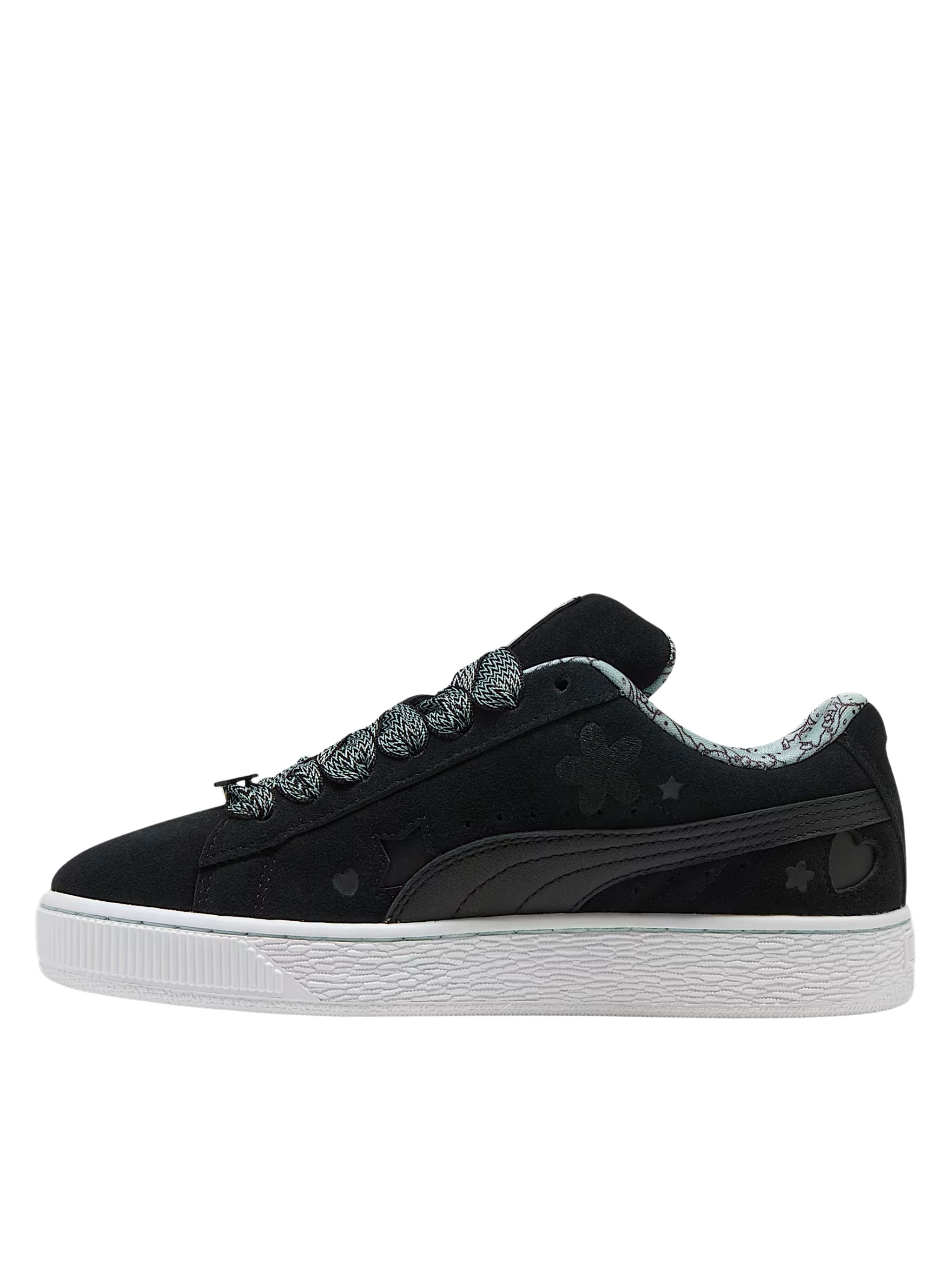 Los PUMA Suede XL x Hello Kitty reinterpretan la icónica silueta Suede XL con el encanto juguetón de Hello Kitty y sus amigos. Presentan un diseño con cuello y lengüeta especialmente acolchados y una suela gruesa, conservando el ADN retro-chunky. Detalles como charms metálicos en los cordones, estampas de Hello Kitty en la media suela y branding co-marcado realzan el estilo divertido y femenino de la colaboración.